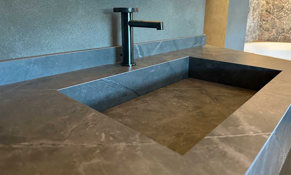 I top lavabo integrati nascono da una progettazione su misura che combina design e praticità. La superficie continua garantisce pulizia, facilità di utilizzo e una forte coerenza estetica con l’intero ambiente bagno.